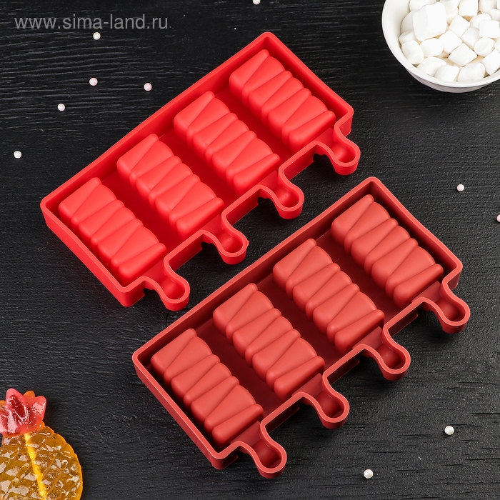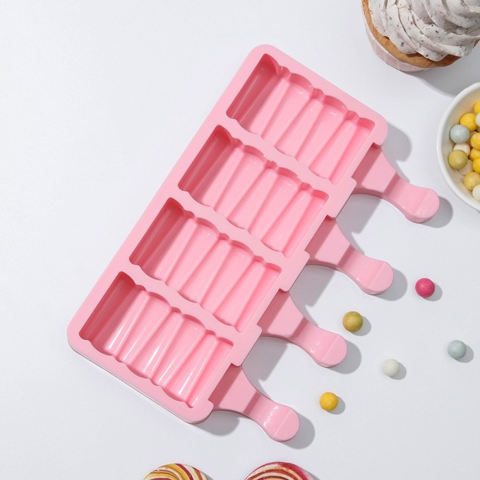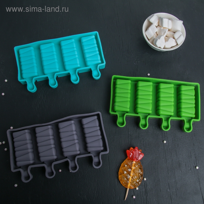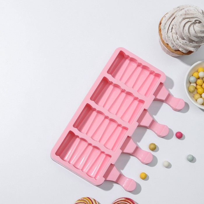 Форма для мороженого Доляна «Эскимо в глазури», силикон, 18,5×12,3×2,5 см, 4 ячейки, цвет МИКС
