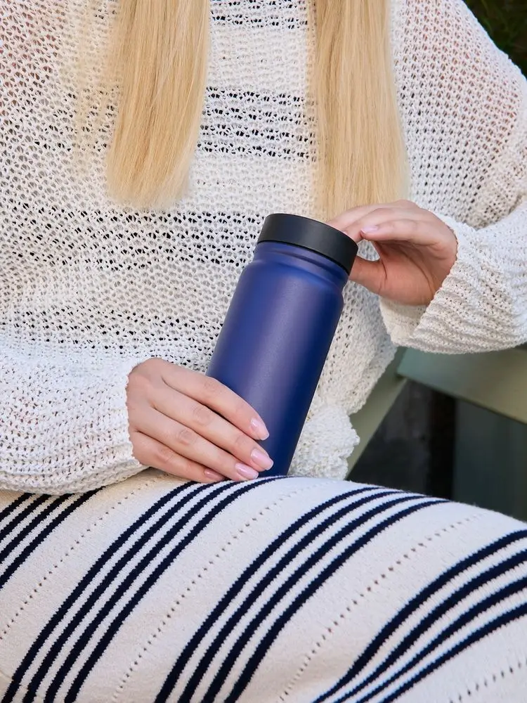 - Герметичная завинчивающаяся крышка с силиконовым уплотнителем и питьевой системой с клапаном — технология 360° позволяет одним нажатием открывать кружку и пить с любой стороны
