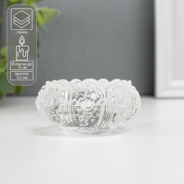 Подсвечник стекло на 1 свечу "Королевский узор" прозрачный 3,5х7,3х7,3 см
