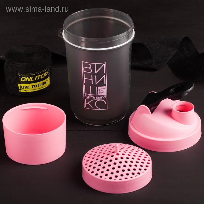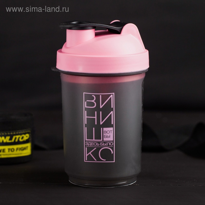Шейкер спортивный «Вот бы здесь было винишко», чёрно-розовый, с чашей под протеин, 500 мл