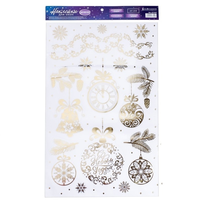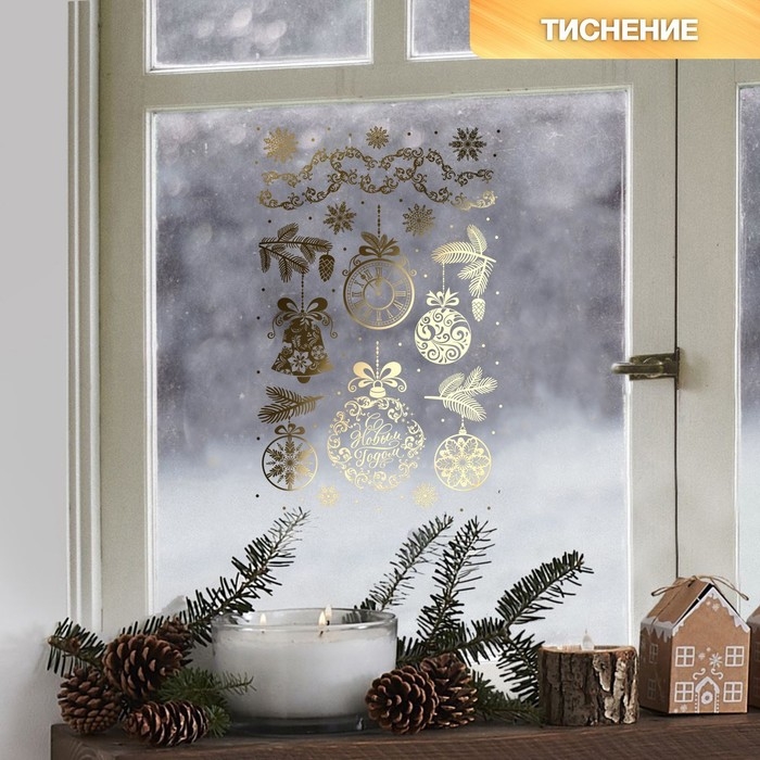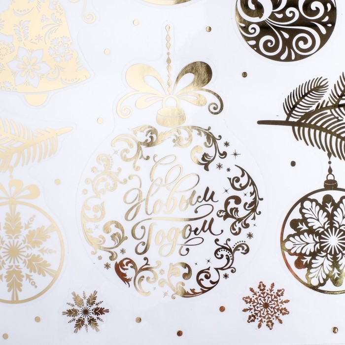 Наклейки новогодние виниловые с фольгированием «C Новым годом», 30 х 50 см, Новый год
