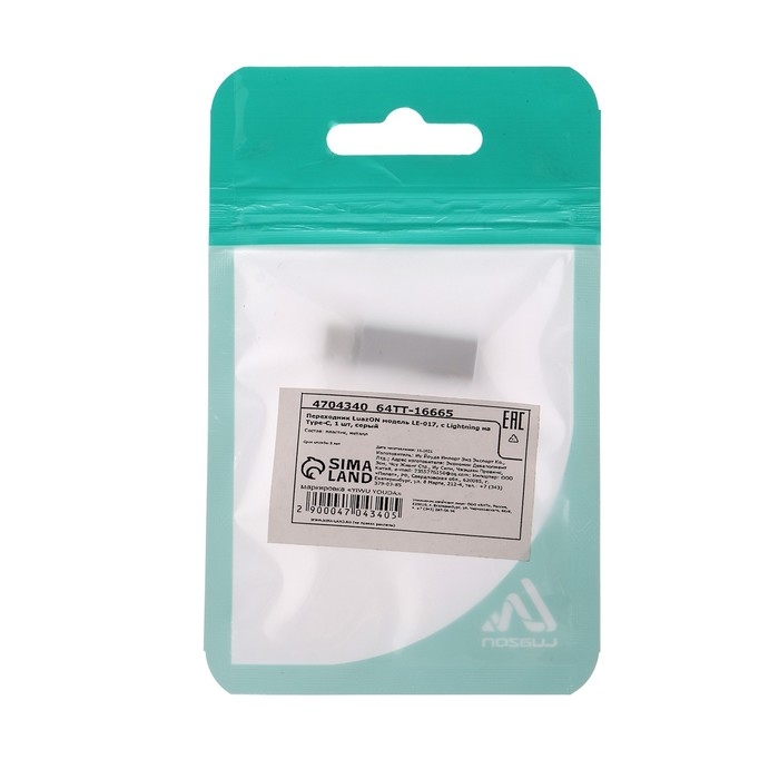 Переходник Luazon LE-017, с Lightning на Type-C, 1 шт, серебристый