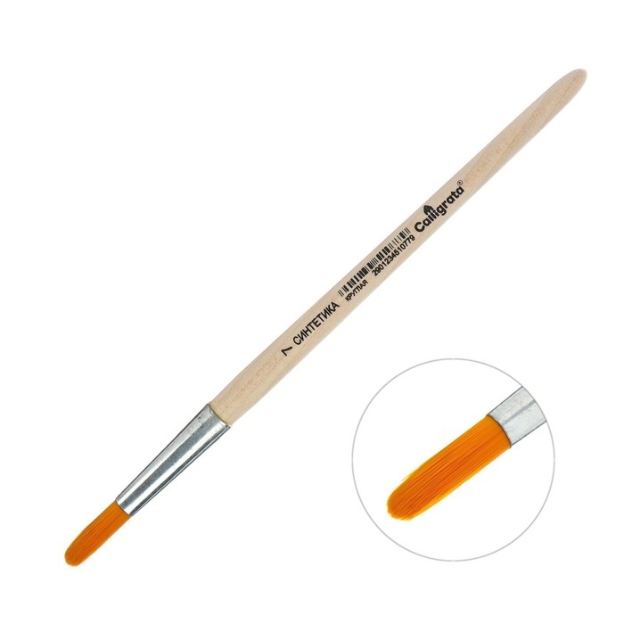 Кисть для рисования, Синтетика Круглая № 7 (диаметр обоймы 7 мм; длина волоса 24 мм), деревянная ручка, Calligrata