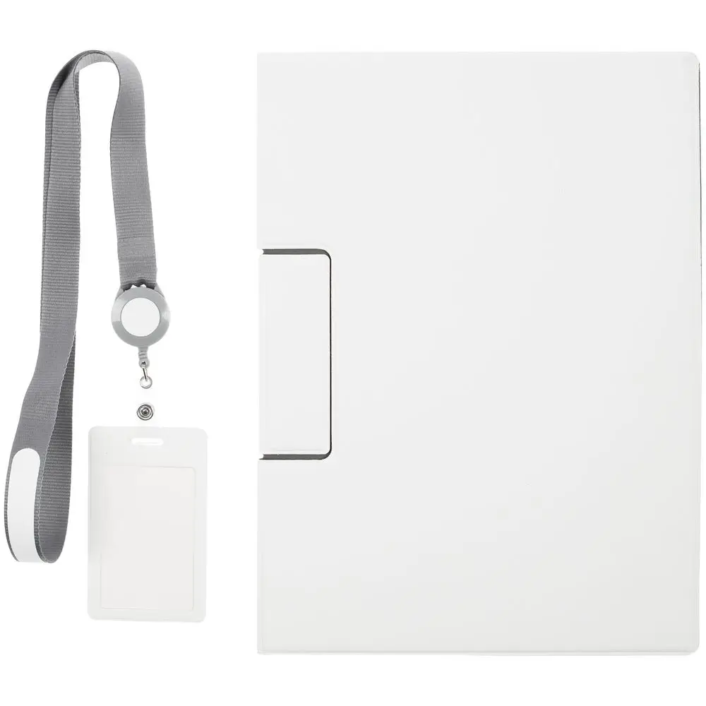 Лаконичный и строгий приветственный набор Devon Span содержит самое необходимое для нового сотрудника или участника профессионального мероприятия. Это папка-планшет и ручка — для комфортных записей и фиксации документов во время деловых переговоров или докладов, а также чехол для пропуска на ленте — для безопасности и идентификации — все в компактной легкой сумке.