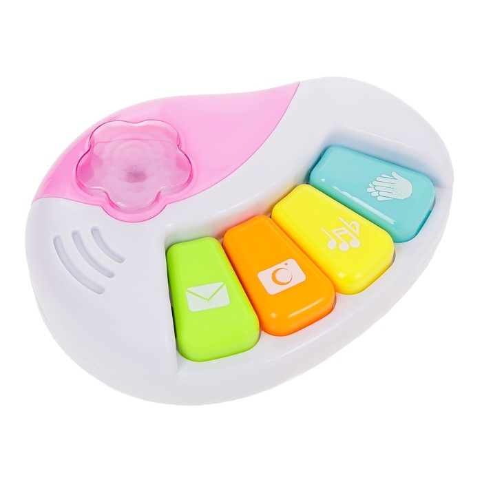 Игрушку удобно держать в маленькой ручке и нажимать на кнопочки. Имеет 12 весёлых мелодий и световой элемент — мерцающий огонёк.