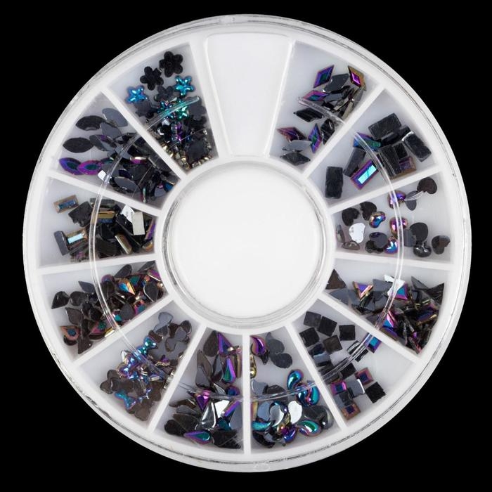 Стразы фигурные для декора ногтей «Ассорти», цвет чёрная голография