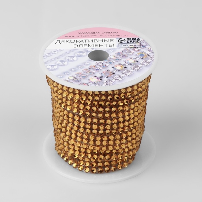 Стразы термоклеевые, d = 4 мм, ширина - 10 мм, 4,5 ± 0,5 м, цвет золотой