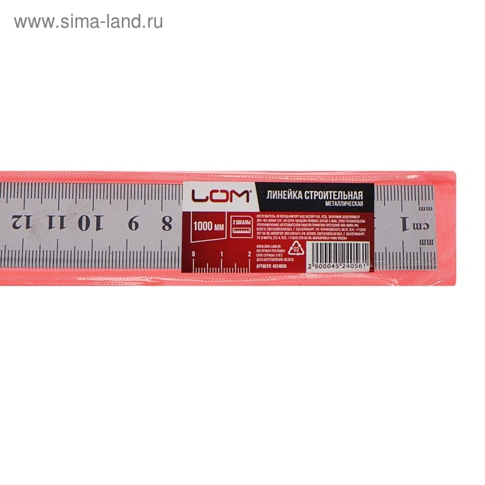 Линейка измерительная ЛОМ, металлическая, 1000 мм