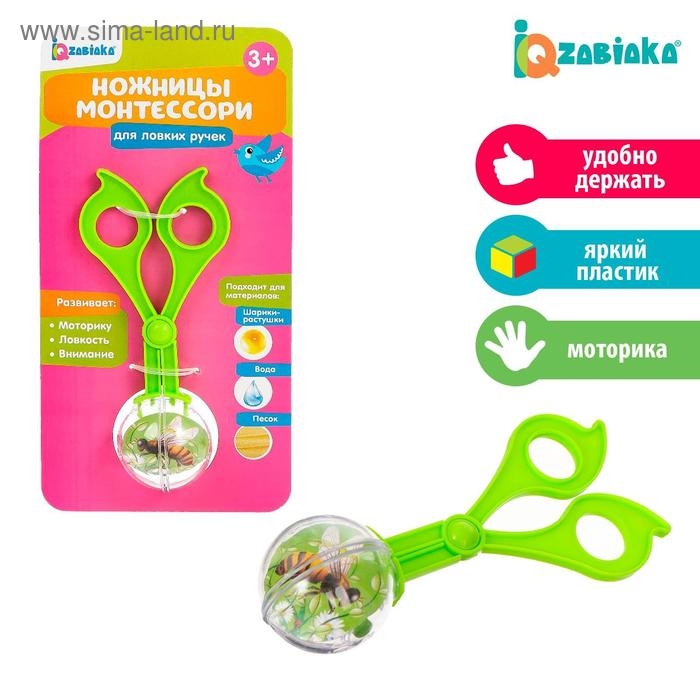 Эти необычные ножницы обучат вашего малыша захватывать предметы в специальные ложечки. Подходит для таких материалов, как шарики-растушки, вода, песок.