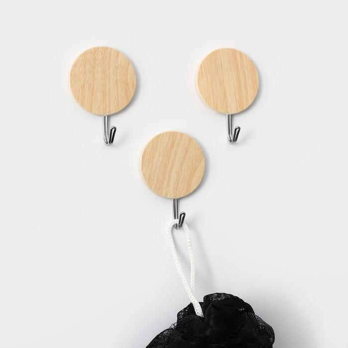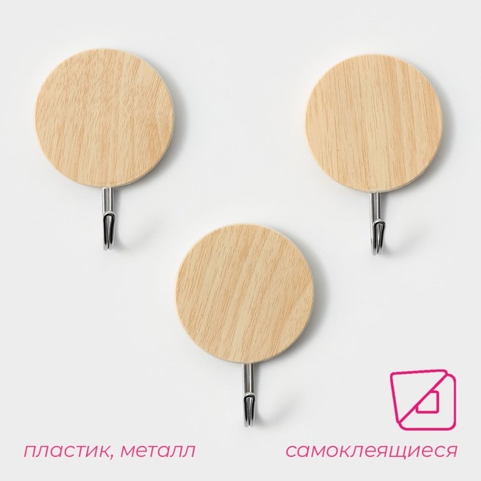 Крючки самоклеящиеся Доляна «Круг», 3 шт, цвет светлое дерево