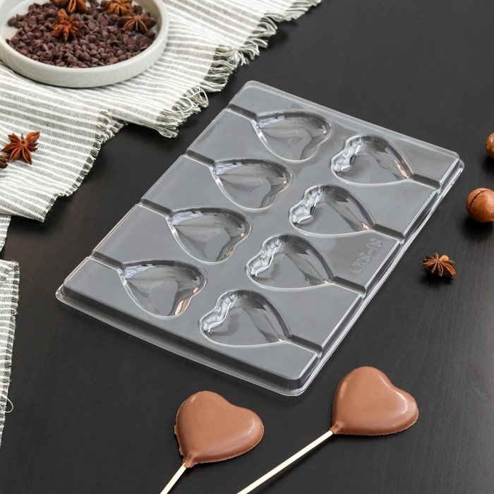 Форма для шоколада и конфет «Сердце», 27,2×18,2 см, 8 ячеек, цвет прозрачный