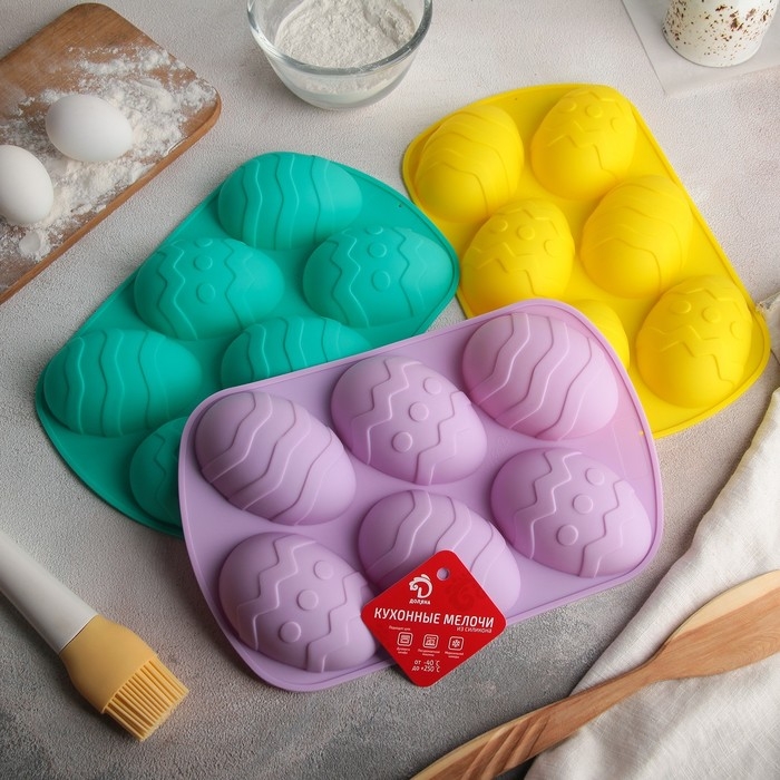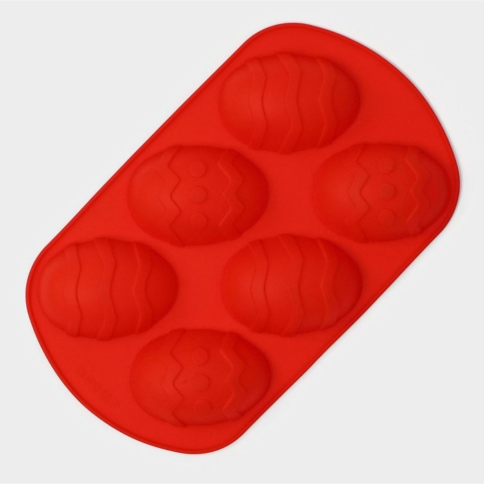 Форма для выпечки Доляна «Пасха. Пасхальные яйца», силикон, 32,5×19,5 см, 6 ячеек (9,7×6,8 см), цвет красный