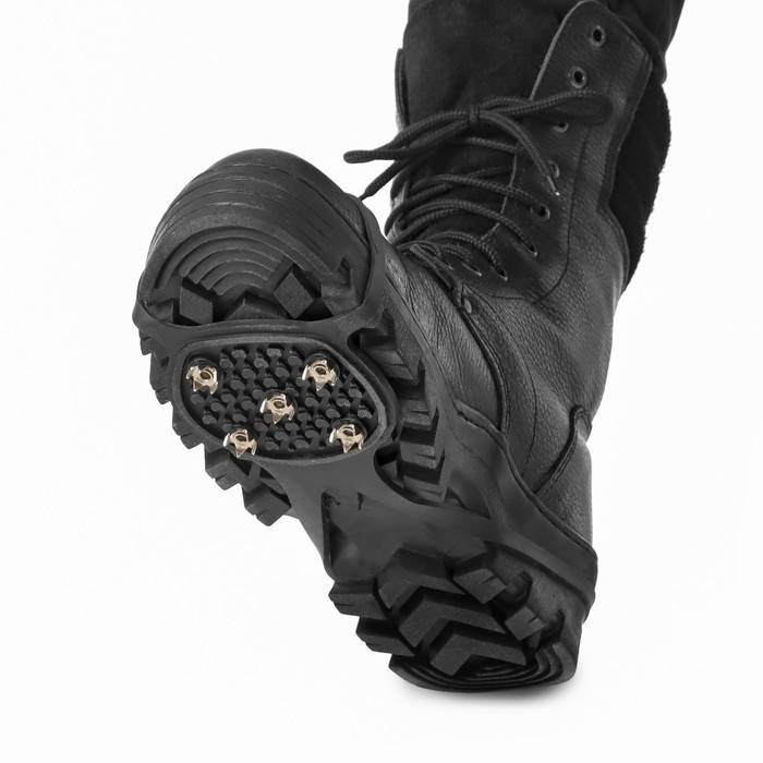 - В конструкции каждого ледохода 5 стальных шипов, предотвращающих скольжение обуви. Они прикреплены к основе по типу заклёпки и не вылетают со временем.