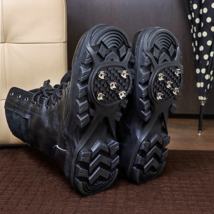 Ледоходы надёжно крепятся на обувь благодаря резиновым петлям и предотвращают скольжение при ходьбе. Это особенно актуально при гололедице, когда риск получить травму при падении значительно возрастает.