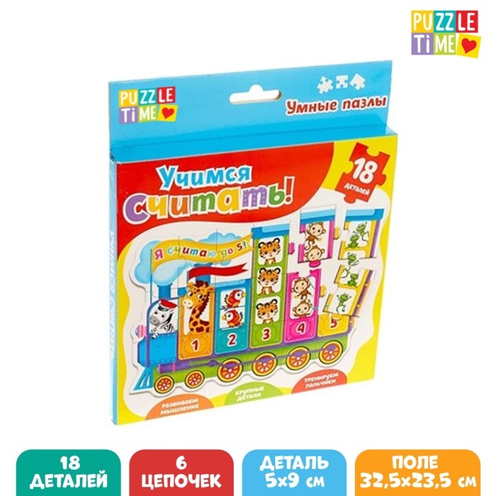 Умные пазлы «Учимся считать», 18 деталей