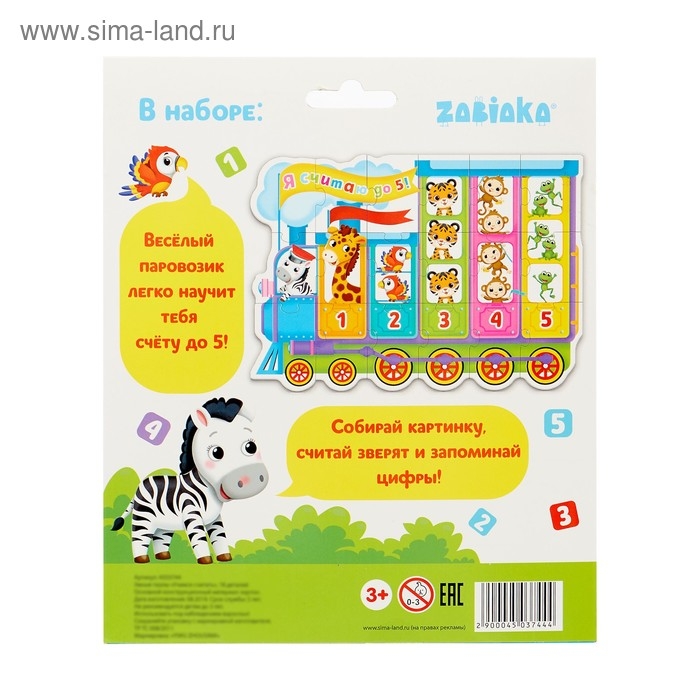 Собирая эти пазлы, ребёнок выучит цвета, познакомится с весёлыми зверятами, научится считать до 5 и складывать целое изображение из крупных деталей.