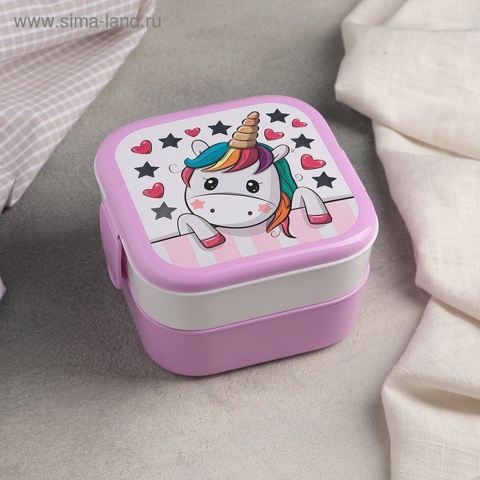 Контейнер для обеда «Единорог», 2 отделения, 400+400 мл, цвет розовый