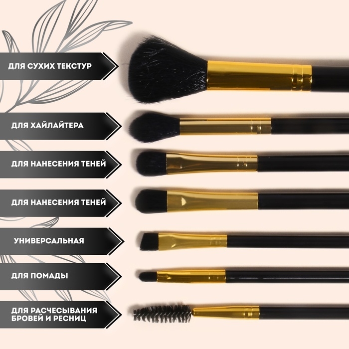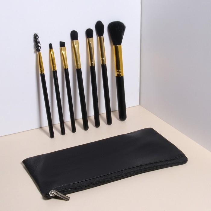 Набор кистей для макияжа, 7 предметов, чехол на молнии, цвет чёрный