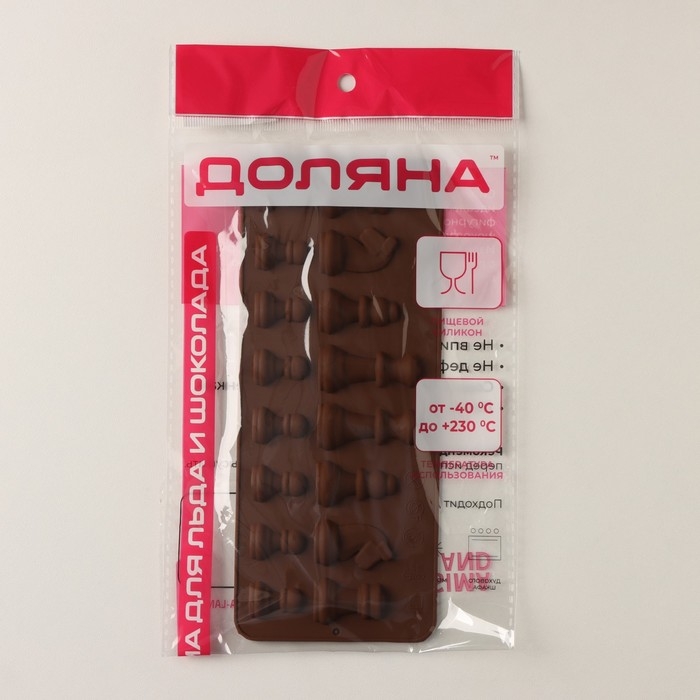 Форма для шоколада Доляна «Шахматы», силикон, 20,6×8,8 см, 16 ячеек, цвет коричневый