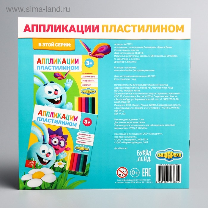 С книгой «Аппликации пластилином», «Смешарики» малыш освоит основы лепки и создаст яркие композиции.