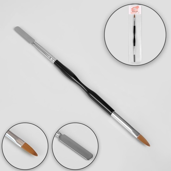 На одном конце инструмента расположена кисть формы лепесток из синтетического ворса. Ей можно распределять, формировать и моделировать материал на ногте.