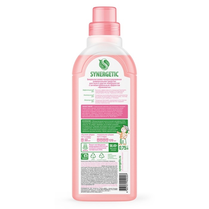 Биоразлагаемое концентрированное средство с антибактериальным эффектом SYNERGETIC "Аромамагия" - универсальное средство для ежедневной и генеральной уборки пола и других поверхностей: столов, стен, потолка.