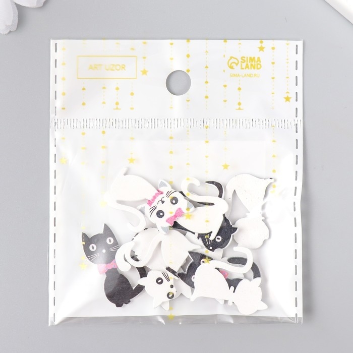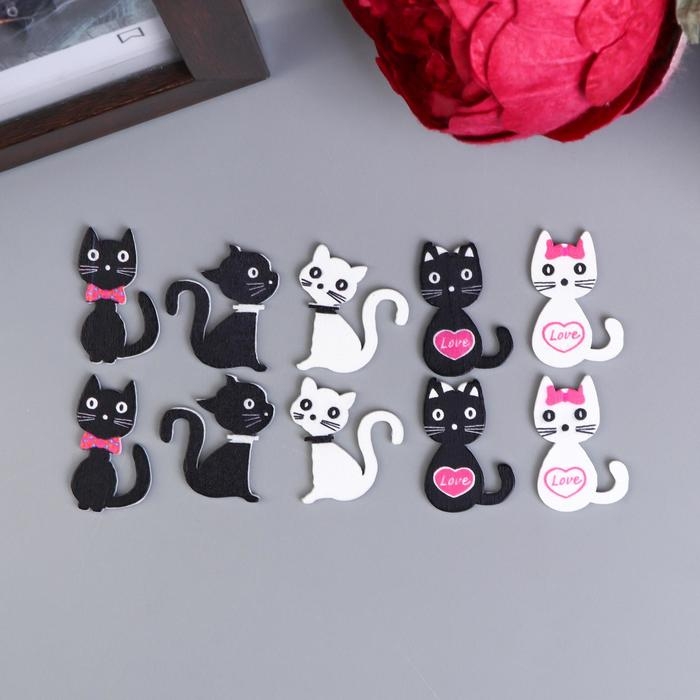 Декор для творчества дерево "Кошки чёрные и белые" набор 10 шт 2,5х2,5 см
