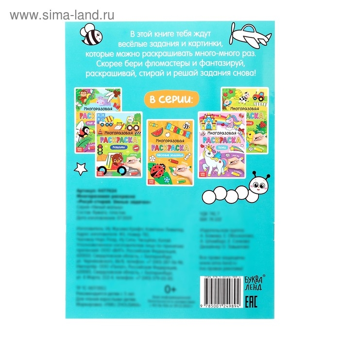Картинки в этой книге можно раскрашивать много-много раз. Скорее берите фломастеры и фантазируйте, раскрашивайте, стирайте и раскрашивайте снова!