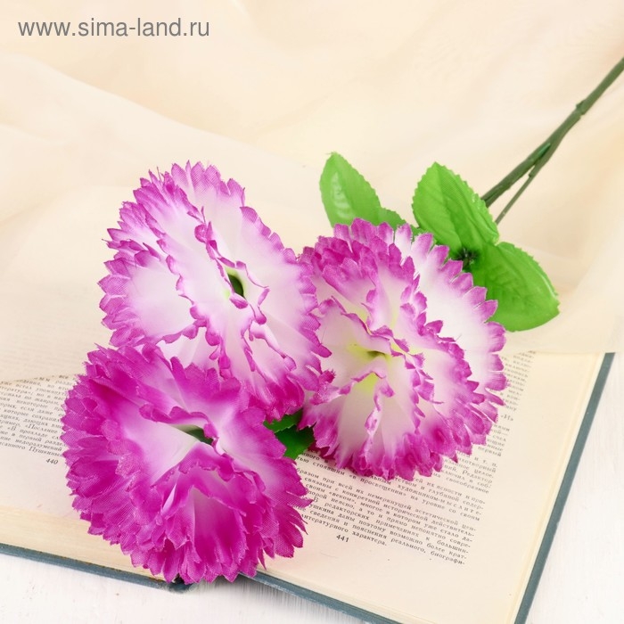 Цветы искусственные "Гвоздика трио" 11х58 см, бело-сиреневый