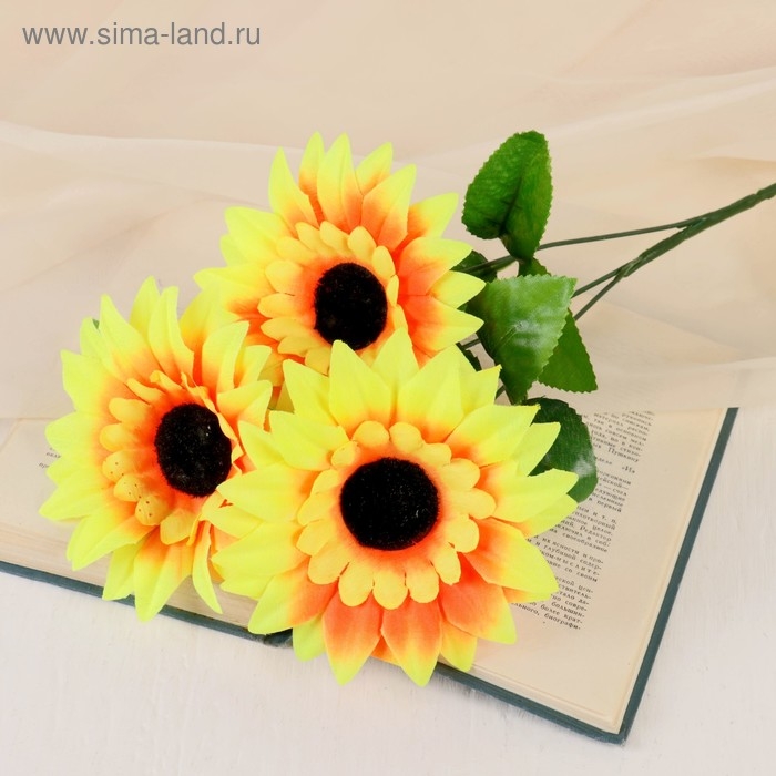 Цветы искусственные "Подсолнухи крупные" три бутона, 13х57 см, жёлтый