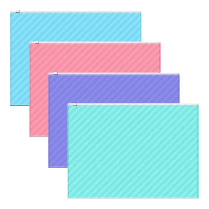 Папка-конверт на молнии Calligrata "Полоска - сеточка" А4, с сеткой внутри, МИКС