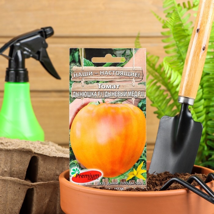 Раннеспелый (от всходов до начала созревания 95-98 дней), индетерминантный, урожайность просто восхищает, до 25 кг с м2, для всех видов теплиц и выращивания в открытом грунте с подвязкой. Плоды сердцевидной формы, очень красивые, оранжево-малиновой окраски, сладкие, мясистые и необыкновенно вкусные, имеют вкус дыни и так же как дыня тают во рту. Средняя масса плодов 350-500 г, а отдельные плоды могут достигать 700 г. Выращивайте и наслаждайтесь!