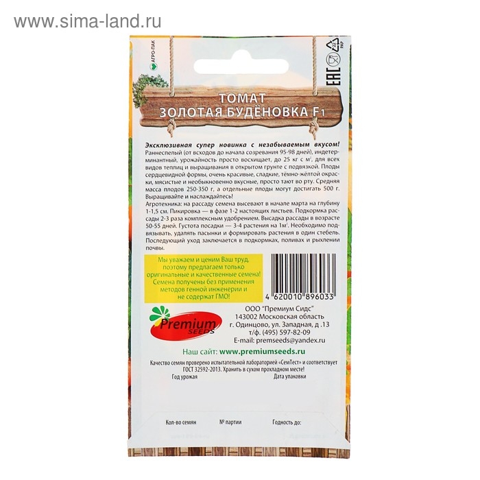 Семена Томат "Золотая буденовка" F1, 0,05 г