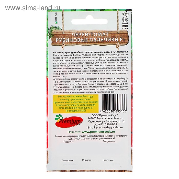 Семена Томат-Черри "Рубиновые пальчики" F1, 0,05 г