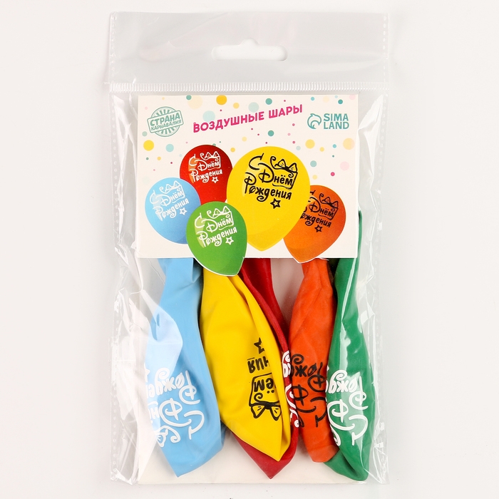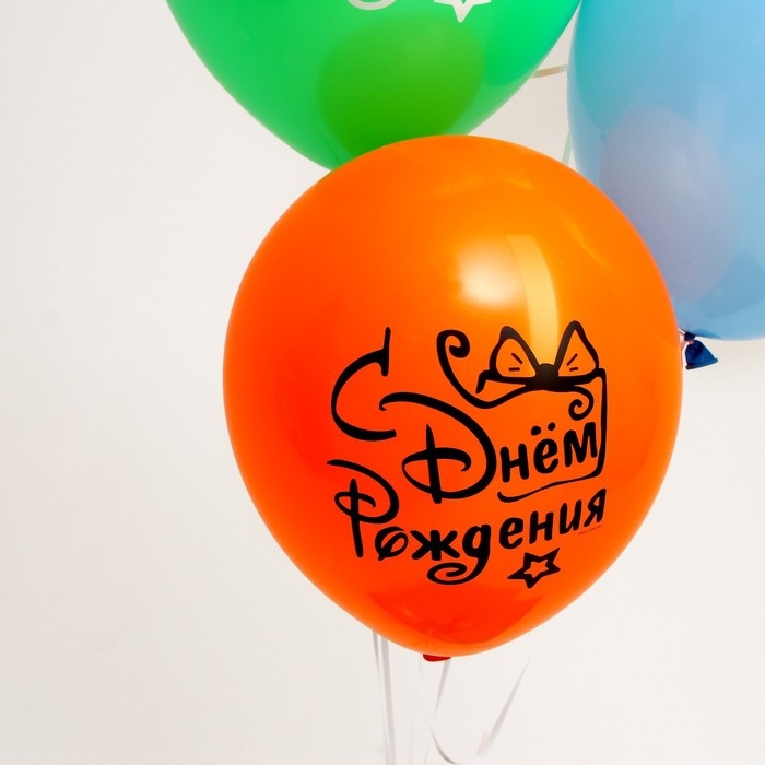 Воздушный шар латексный 12" "С днём рождения", подарок с бантом, 5 шт.