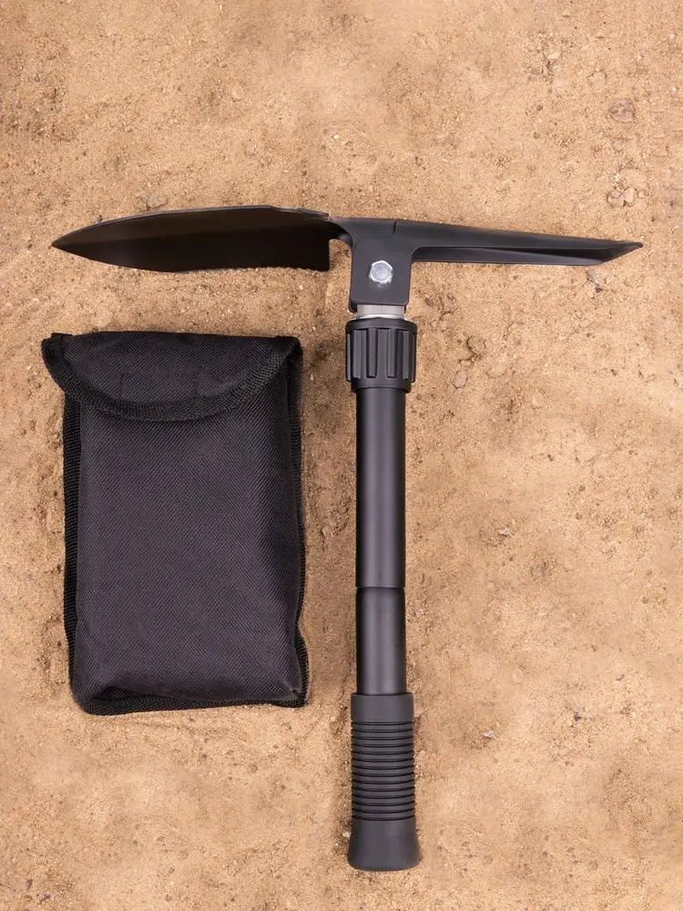 Компактная складная лопата с резиновой рукояткой — многофункциональный инструмент, который понравится автомобилистам, дачникам и туристам. Заменит целых 5 предметов: лопату, мотыгу, кирку, пилу, открывашку.