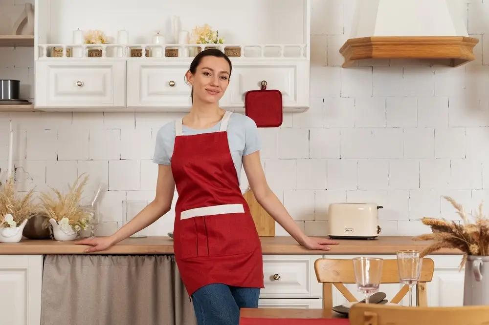 - Фартук с контрастной отделкой и перекрестными регулируемыми лямками