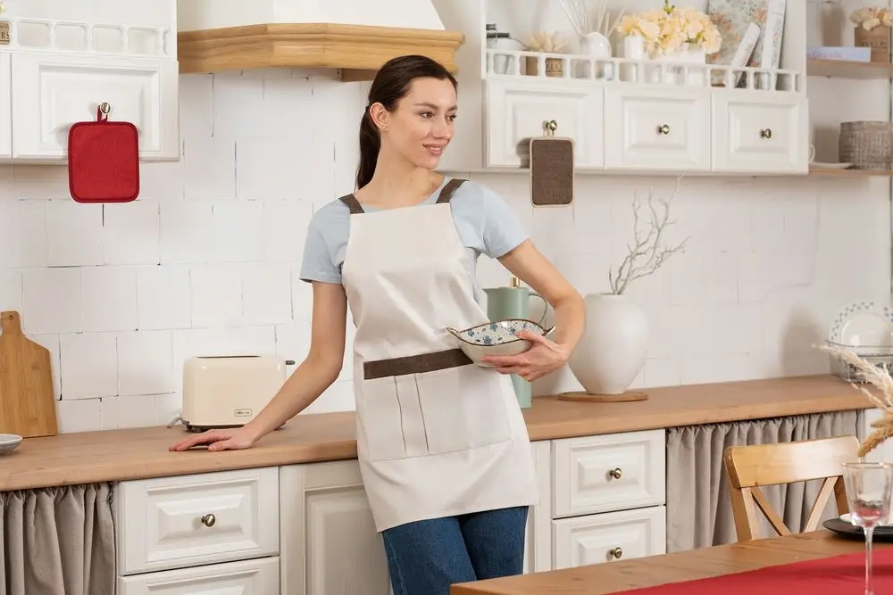 - Фартук с контрастной отделкой и перекрестными регулируемыми лямками