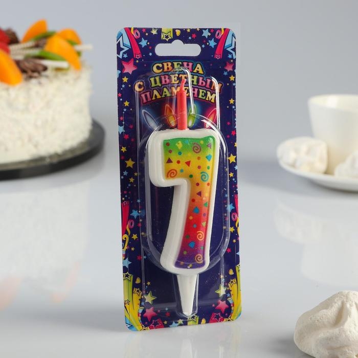 Свеча для торта "Цветное пламя", 10 см, цифра "7"