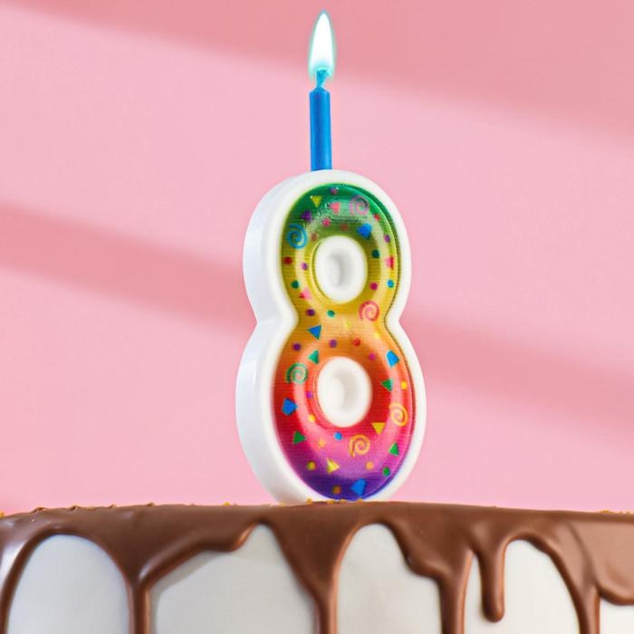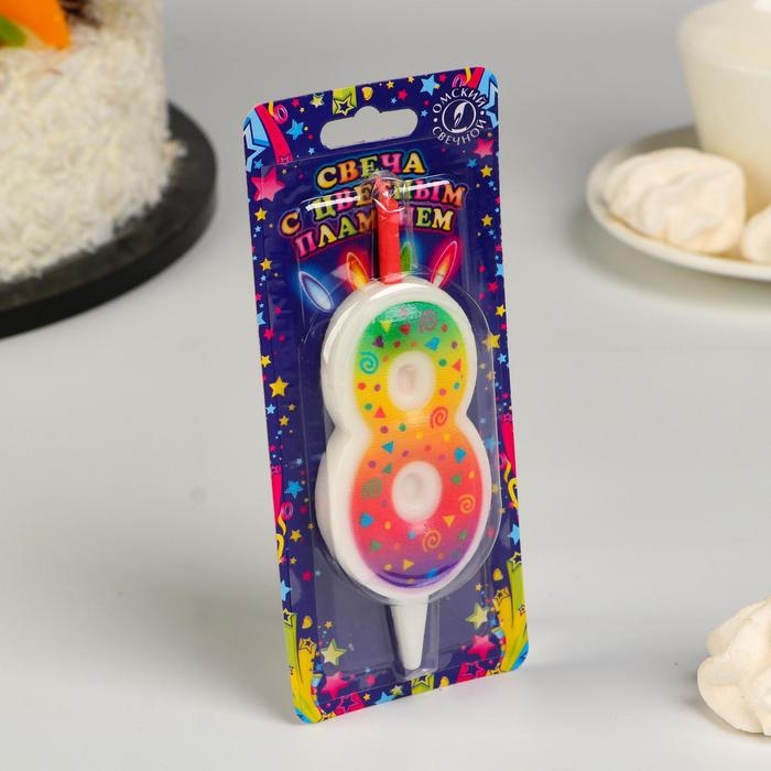 Свеча для торта "Цветное пламя", 10 см, цифра "8"