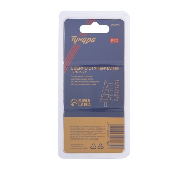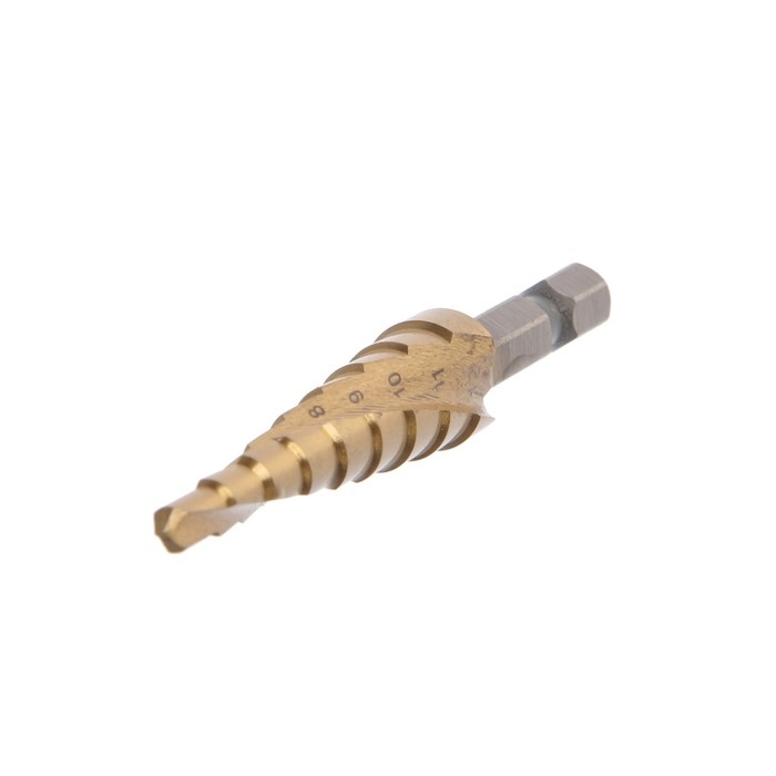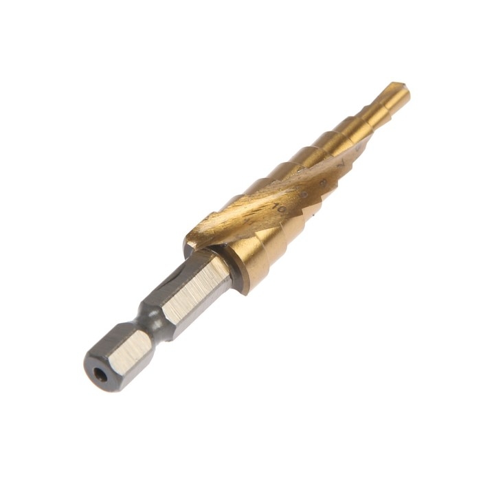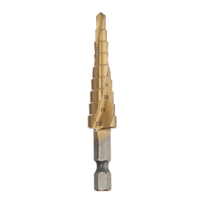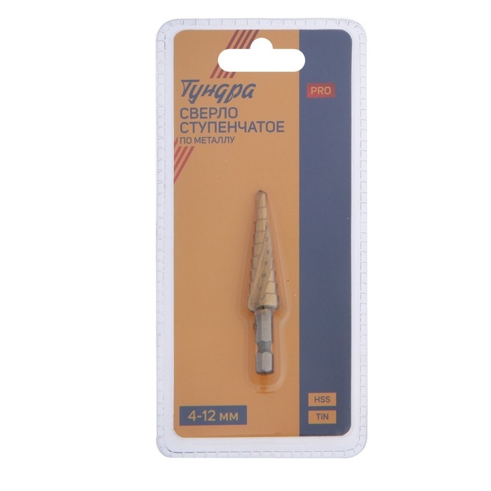 Сверло ступенчатое ТУНДРА ПРОФИ, HSS, TiN, спиральный профиль, шестигран. хвостовик, 4-12 мм