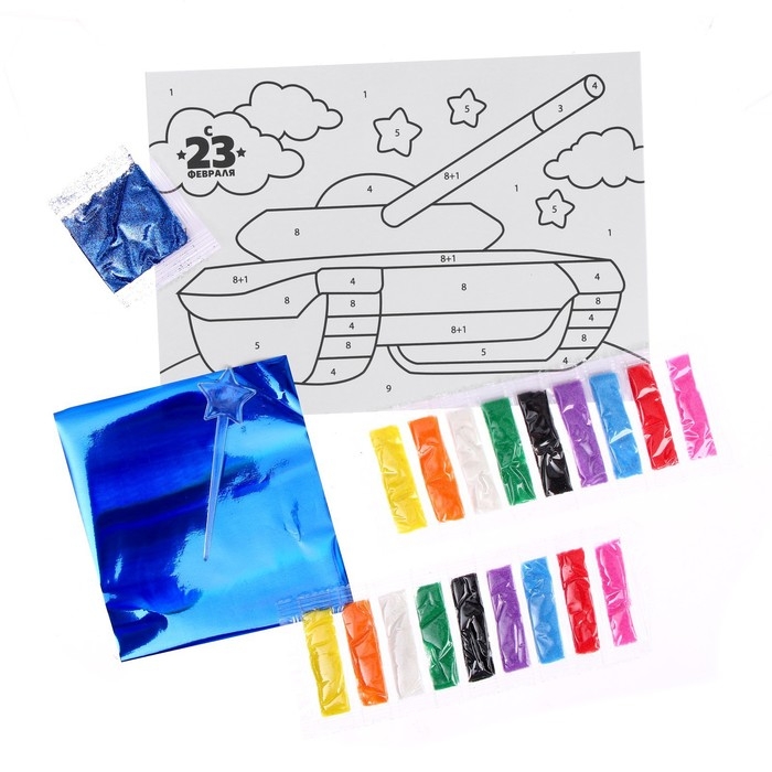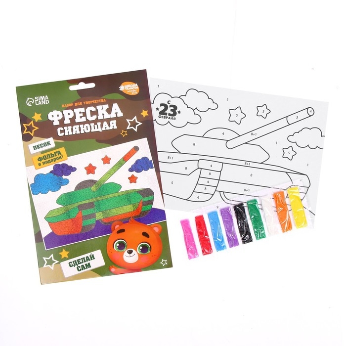 Фреска песком — увлекательный вид творчества, который понравится каждому ребёнку. Клеевая основа защищена специальным слоем бумаги, куда нанесены прорезные контуры. Каждый цвет находится в своей зоне: отделяйте верхний слой с помощью стеки, засыпайте песком подходящего оттенка, добавляйте блёстки и оформляйте элементы фольгой. Специальные контуры не дадут разноцветным частичкам перемешаться и помогут создать сверкающий шедевр.