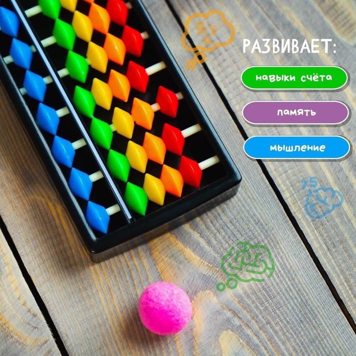 Счёты по методике «Ментальная арифметика» — это эффективный инструмент для обучения счёту с помощью древнейшего инструмента — абакуса. Для продуктивных занятий в комплекте есть инструкция с заданиями.