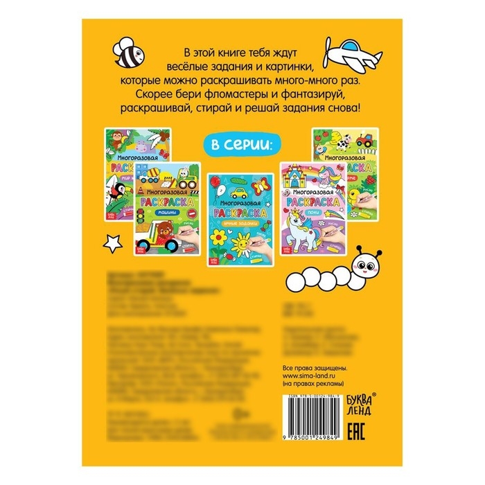 Картинки в этой книге можно раскрашивать много-много раз. Скорее берите фломастеры и фантазируйте, раскрашивайте, стирайте и раскрашивайте снова!