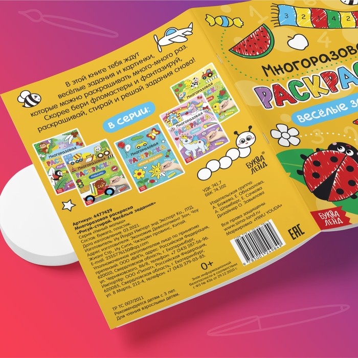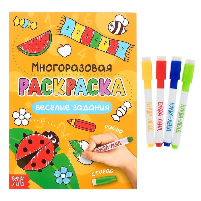 Раскраска многоразовая «Рисуй-стирай. Весёлые задания» 12 стр.
