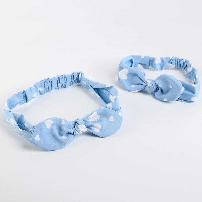 Повязка на голову для мамы и дочки «Набор для фотосессии: сердечки», 2 шт., цв. голубой, M&B