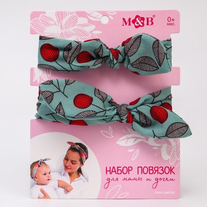 Повязка на голову для мамы и дочки «Набор для фотосессии: клеточка», 2 шт., цв. красный, M&B