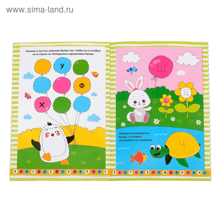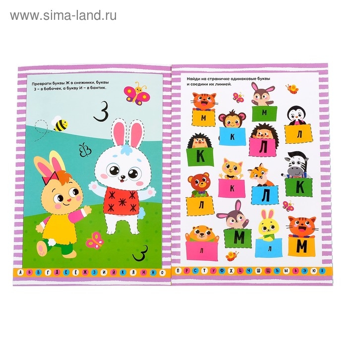 Книга состоит из логических заданий, направленных на изучение букв русского алфавита. Весёлые зверята, птички, насекомые, ждут малыша на страницах издания.