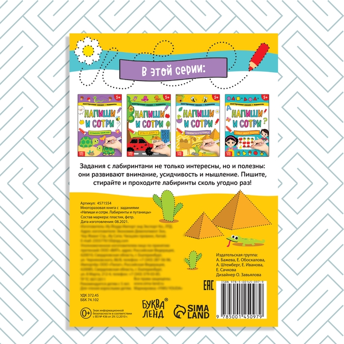 Многоразовая книжка с заданиями «Напиши и сотри. Лабиринты и путаницы», 12 стр.