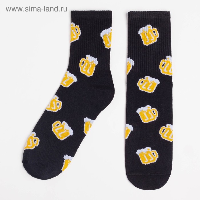 Носки мужские "Пиво" размер 41-44 (27-29 см), чёрный